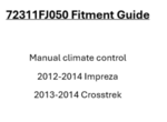 Compatibility: Fits 2012-2014 Impreza and 2013-2014 Crosstrek.